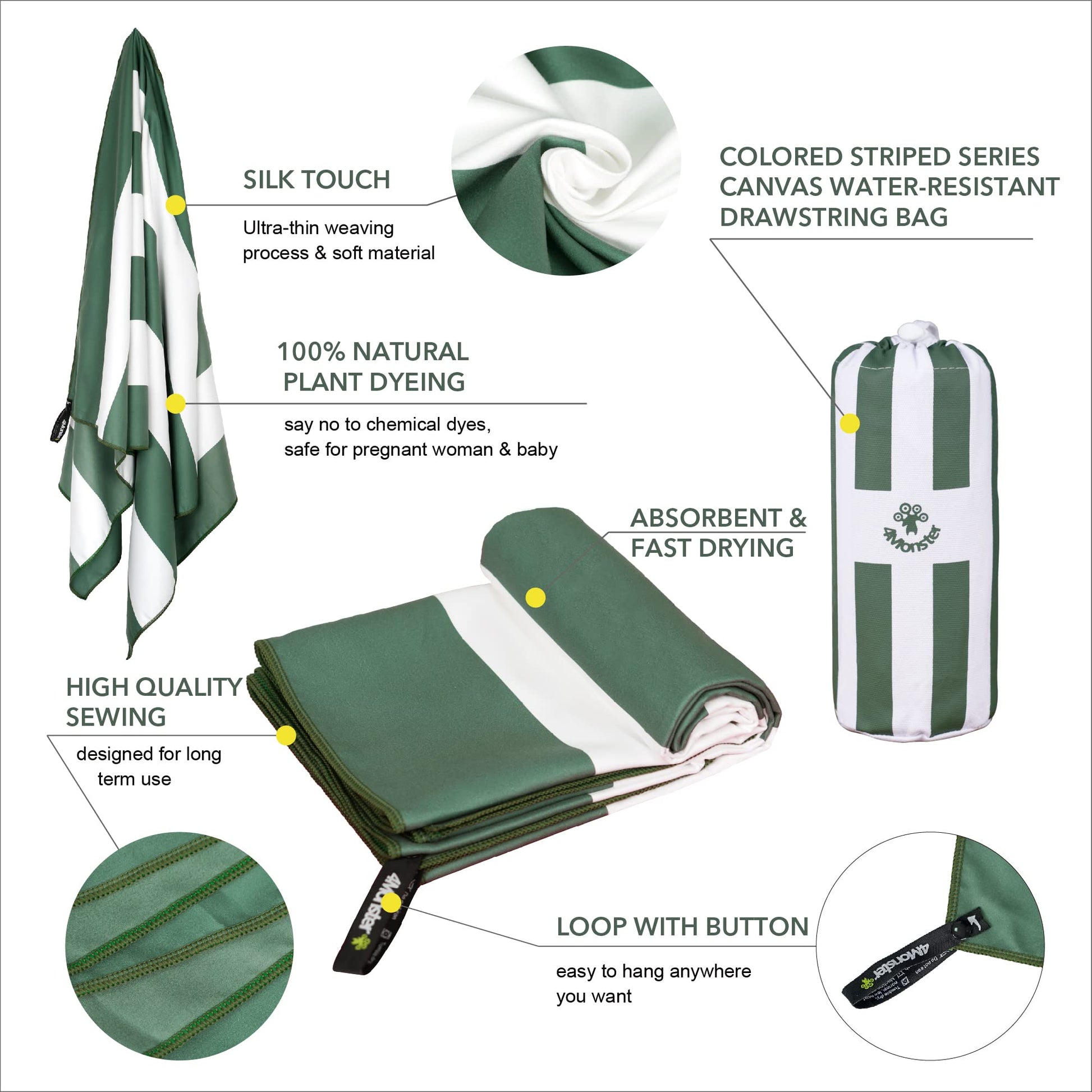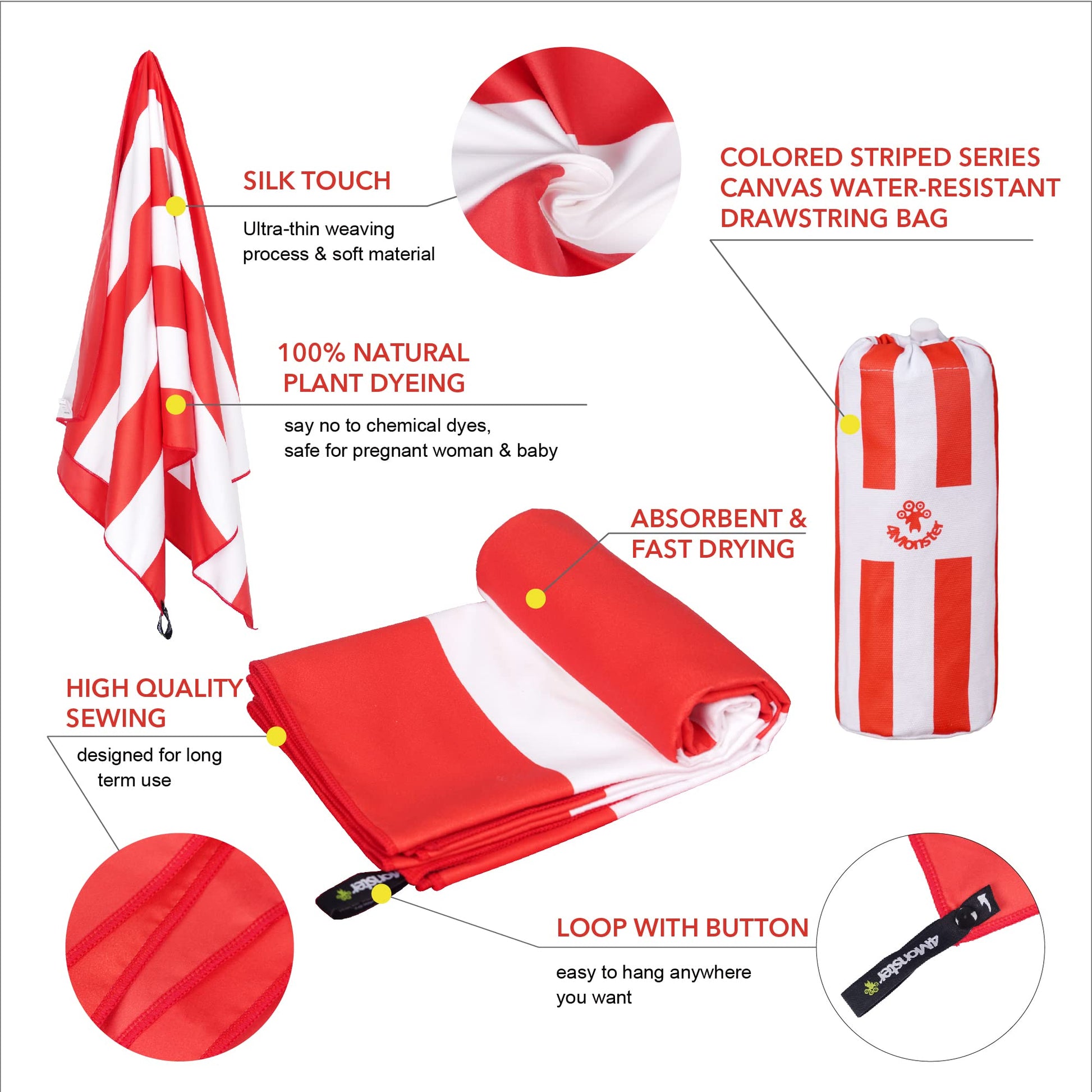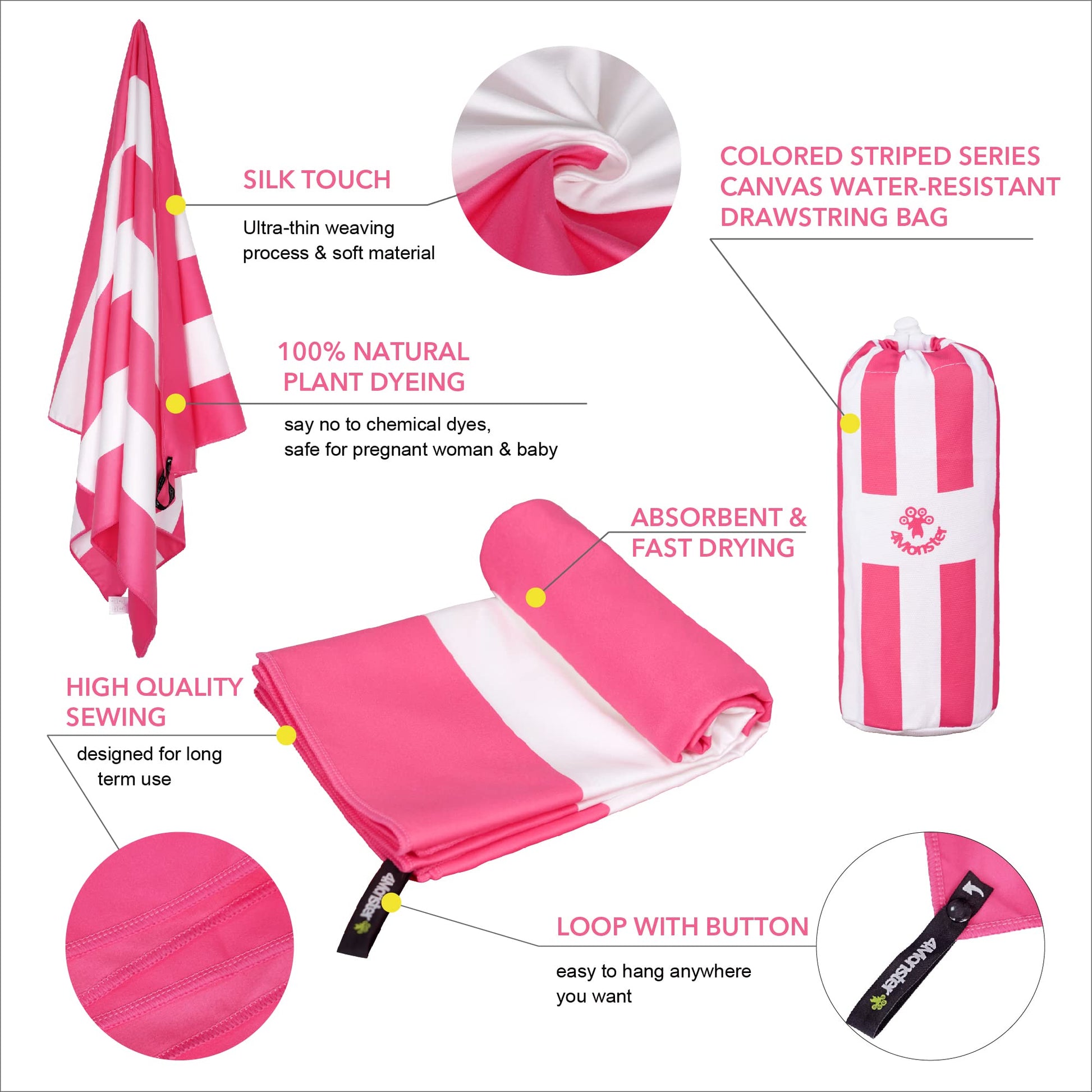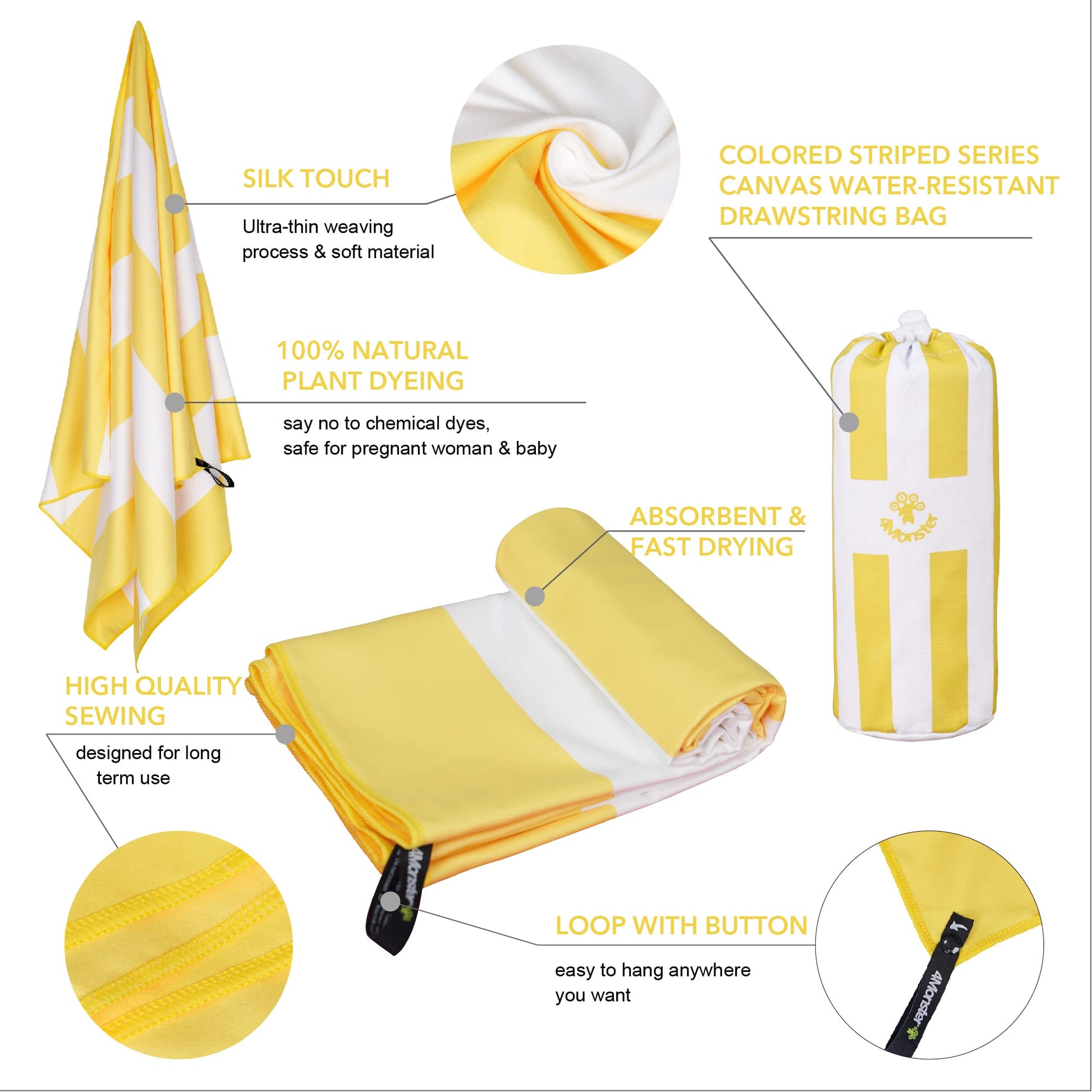SL Travel Gear - 4Monster Microfiber Beach Towel Quick Dry,Super Absorbent Lightweight Travel Towel for Swimmers, Sand Free Camping Towel, Beach Towels for Pool, Swim, Water Sports,Yoga,Gym,Backpacking