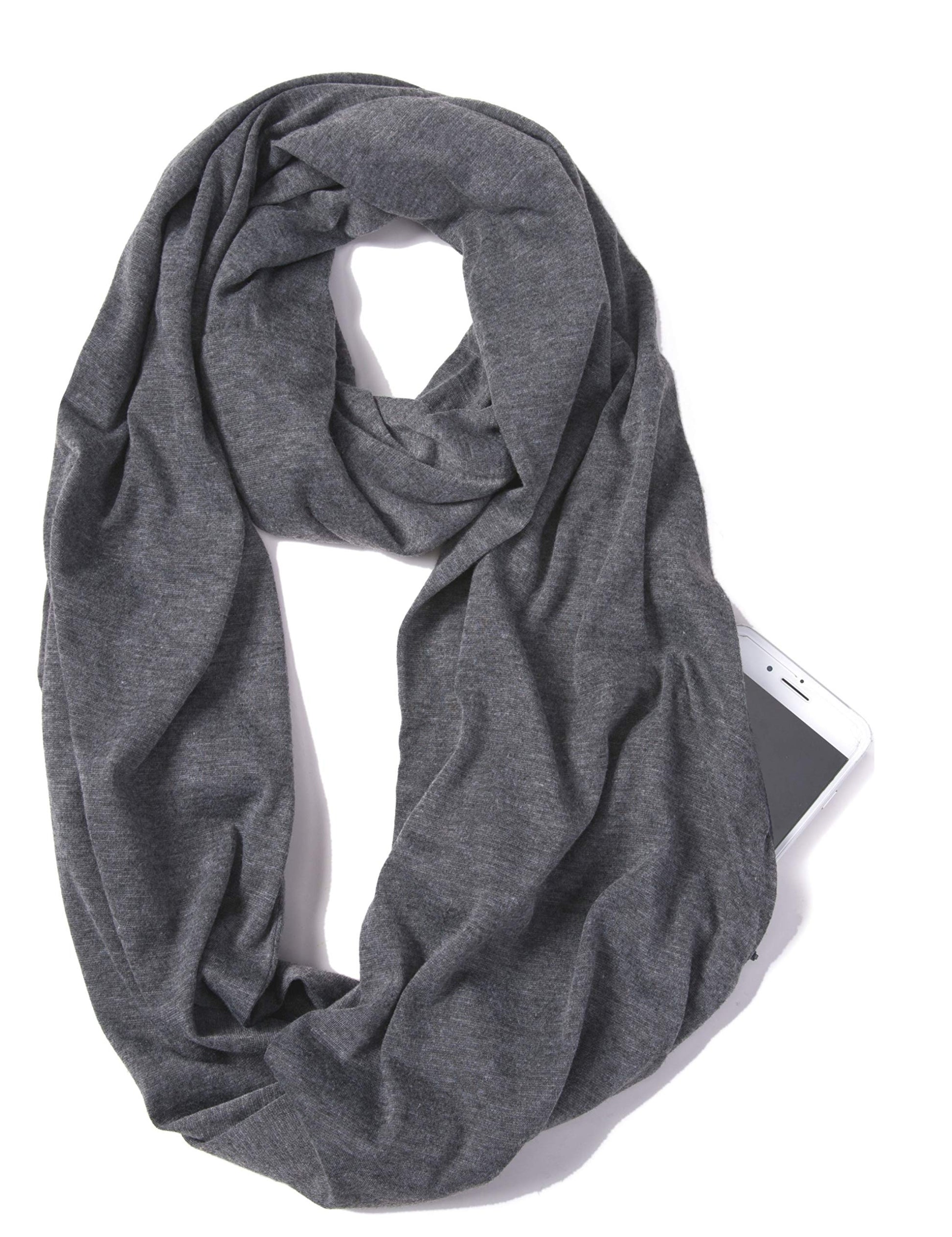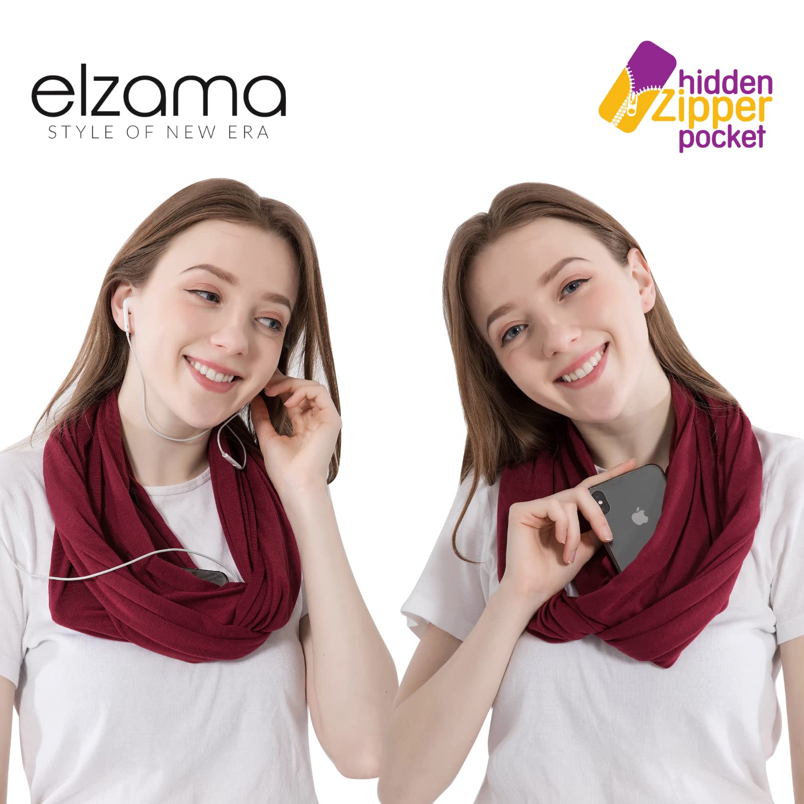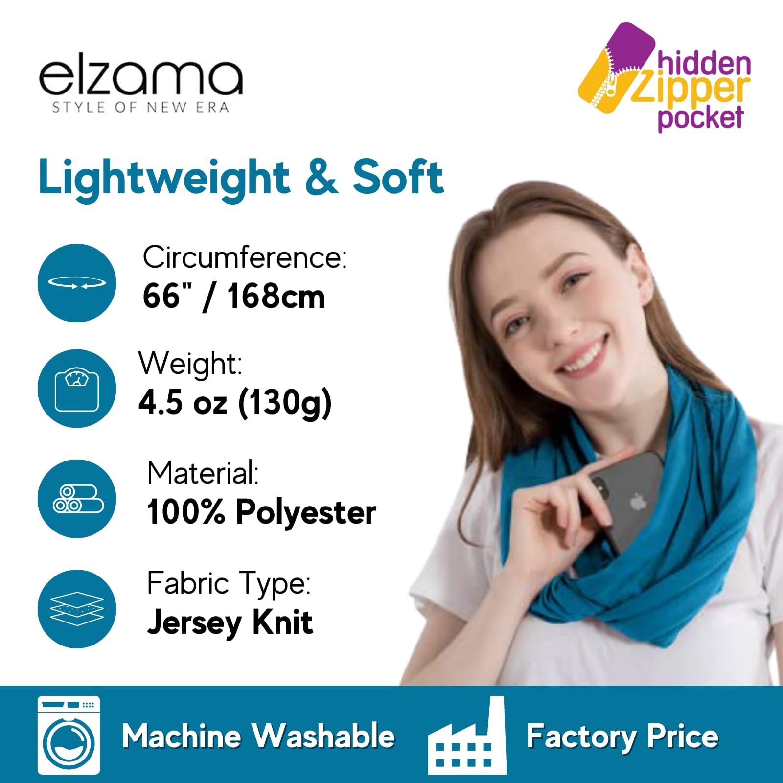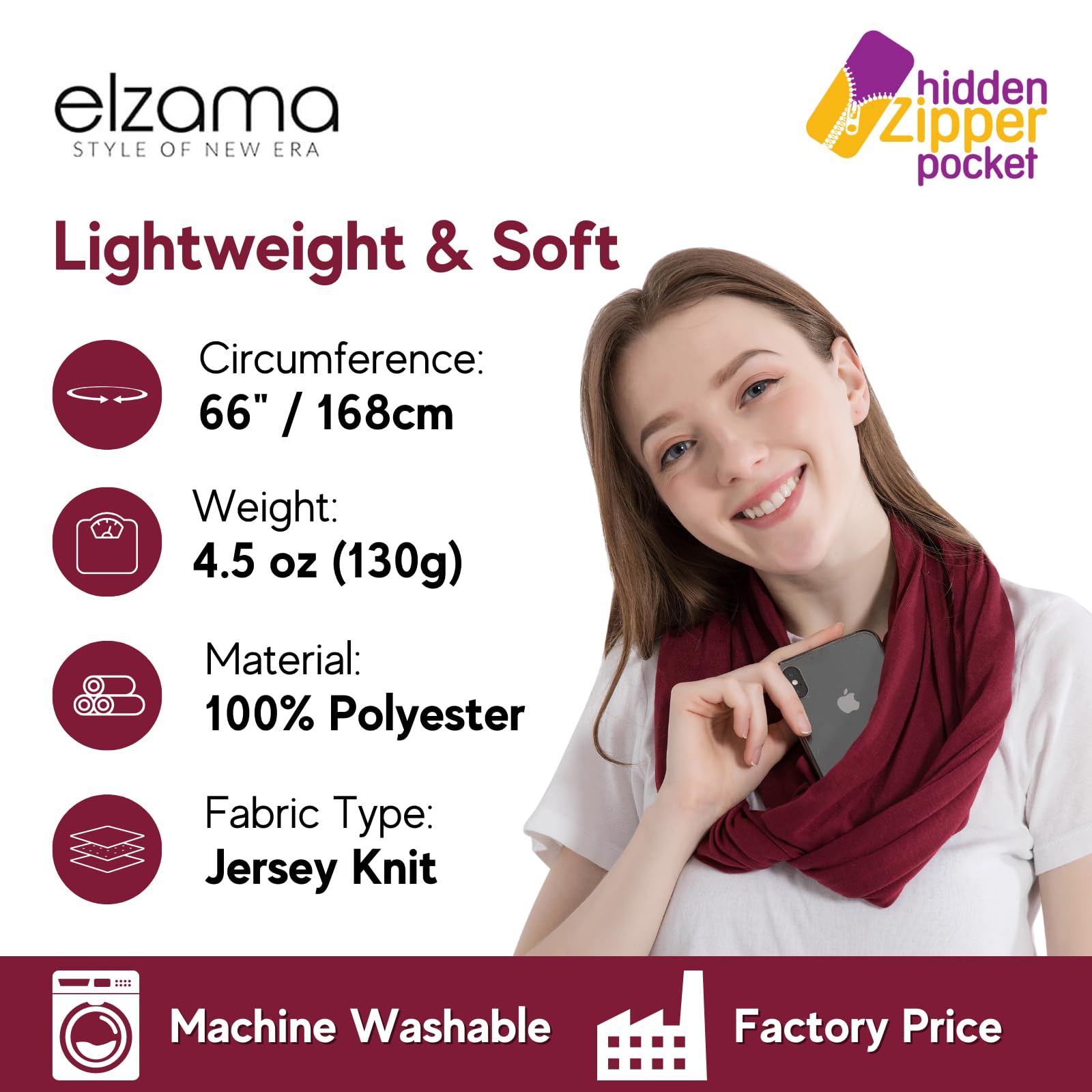 Infinity Loop Solid Color Scarf With Hidden Zipper Pocket For Women - Lightweight Travel Neck Wrap