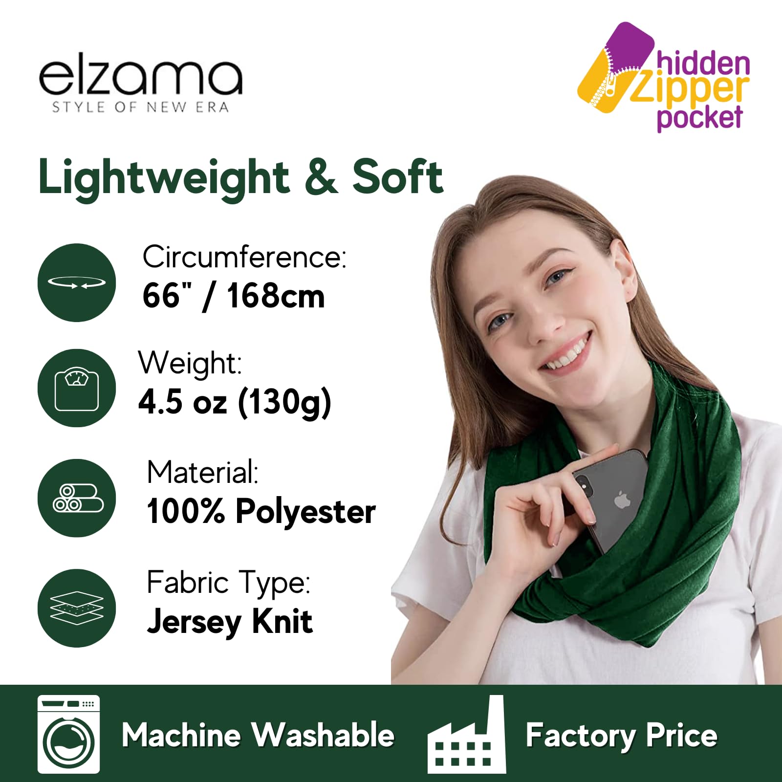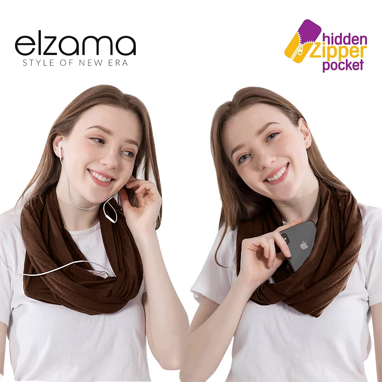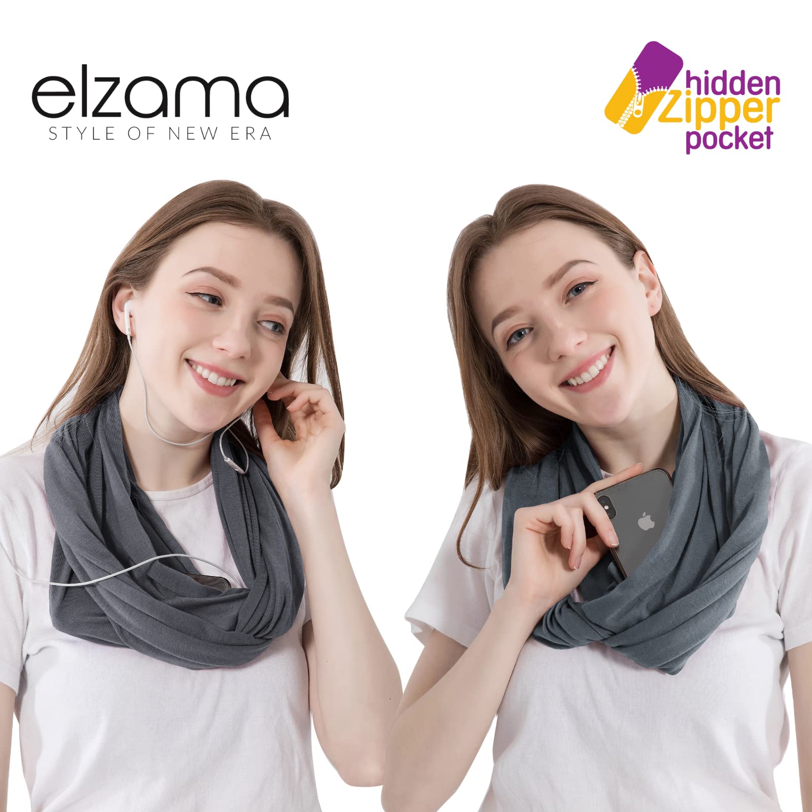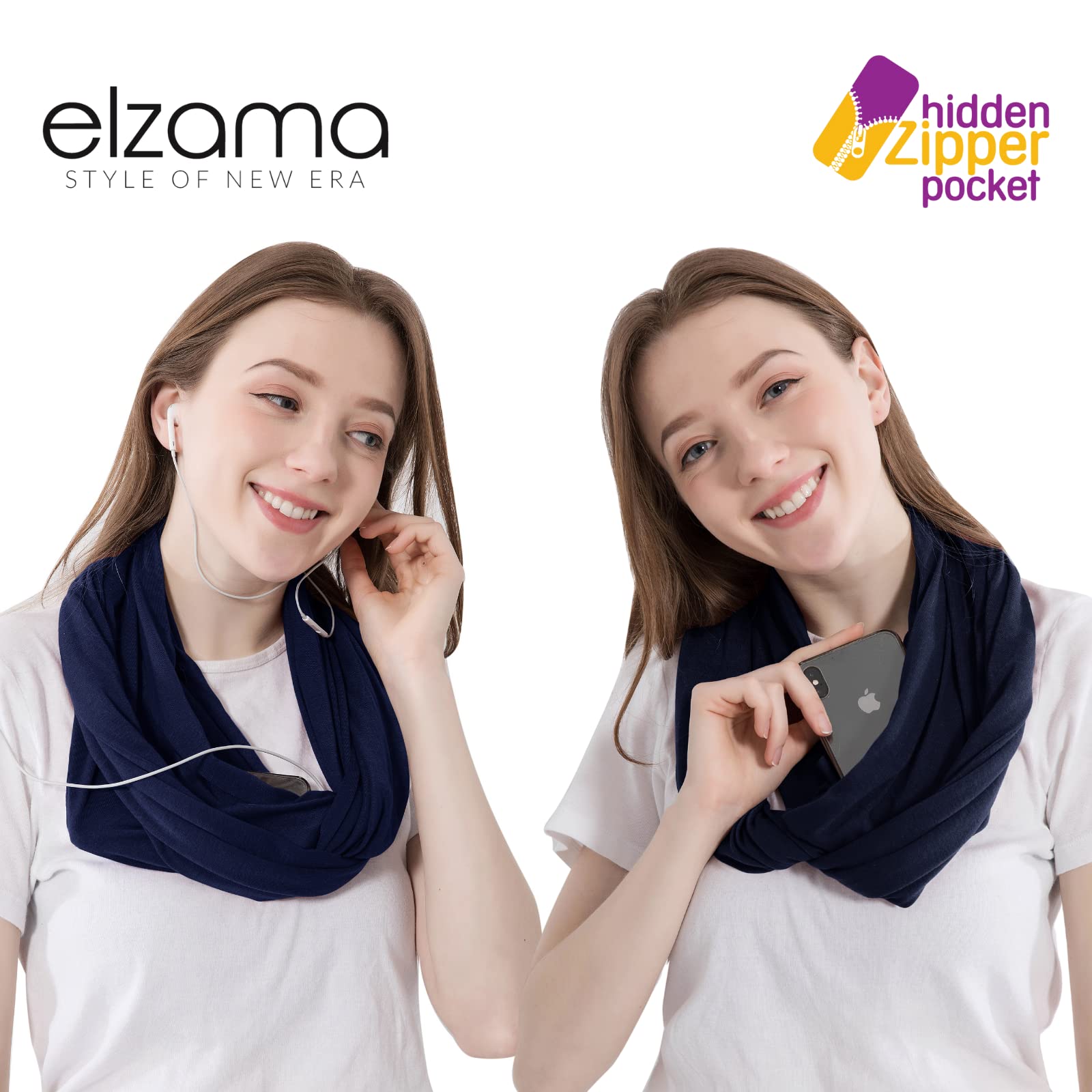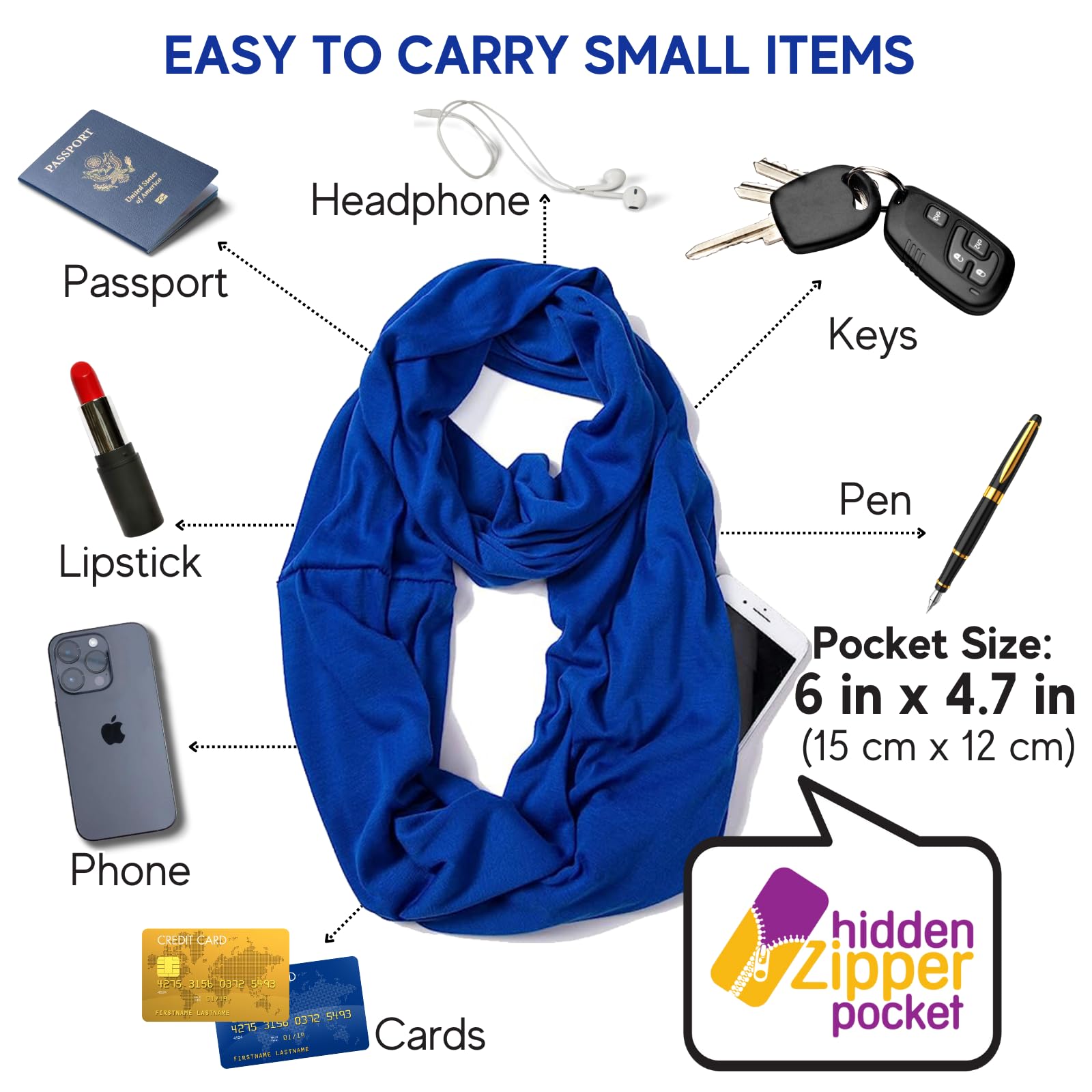 Infinity Loop Solid Color Scarf With Hidden Zipper Pocket For Women - Lightweight Travel Neck Wrap