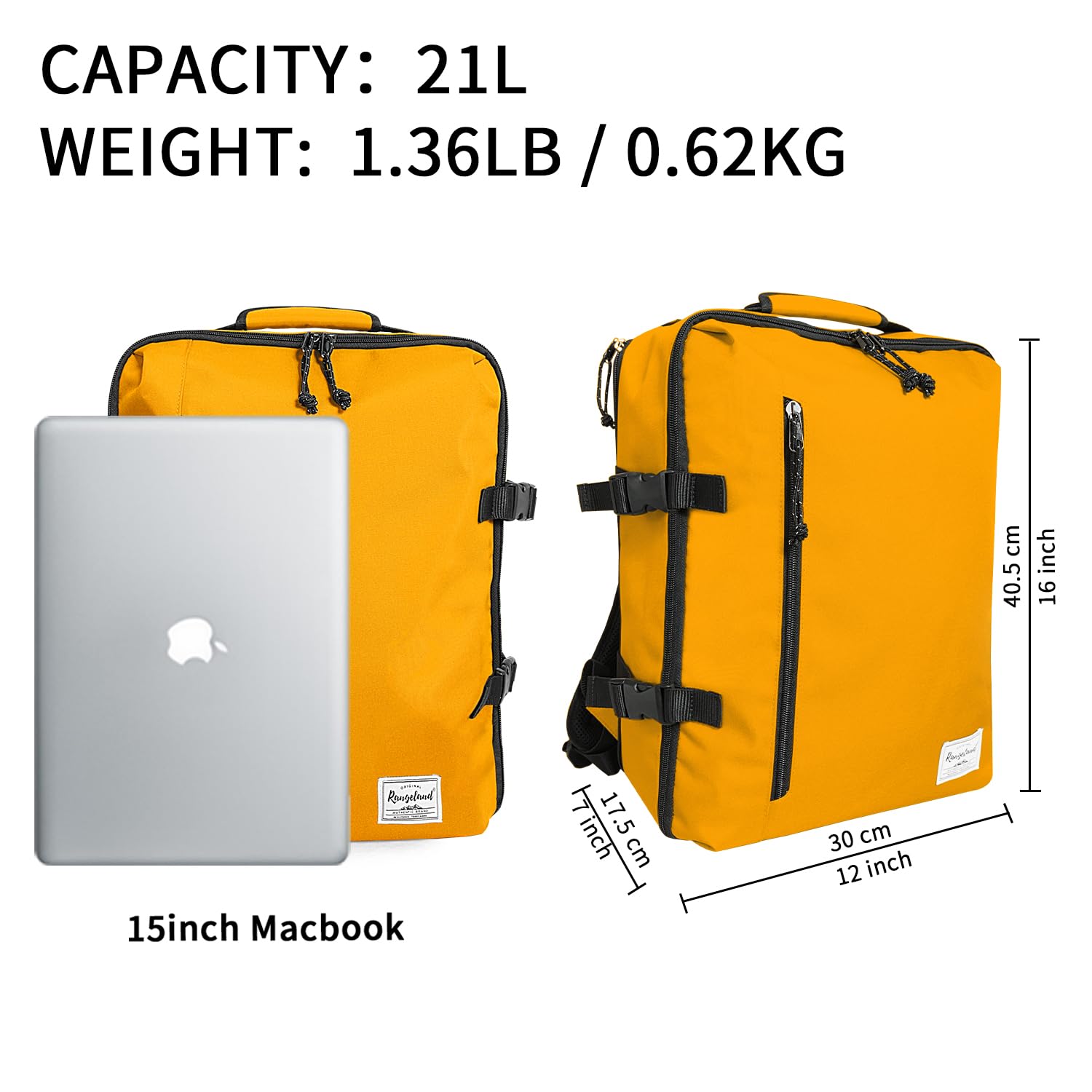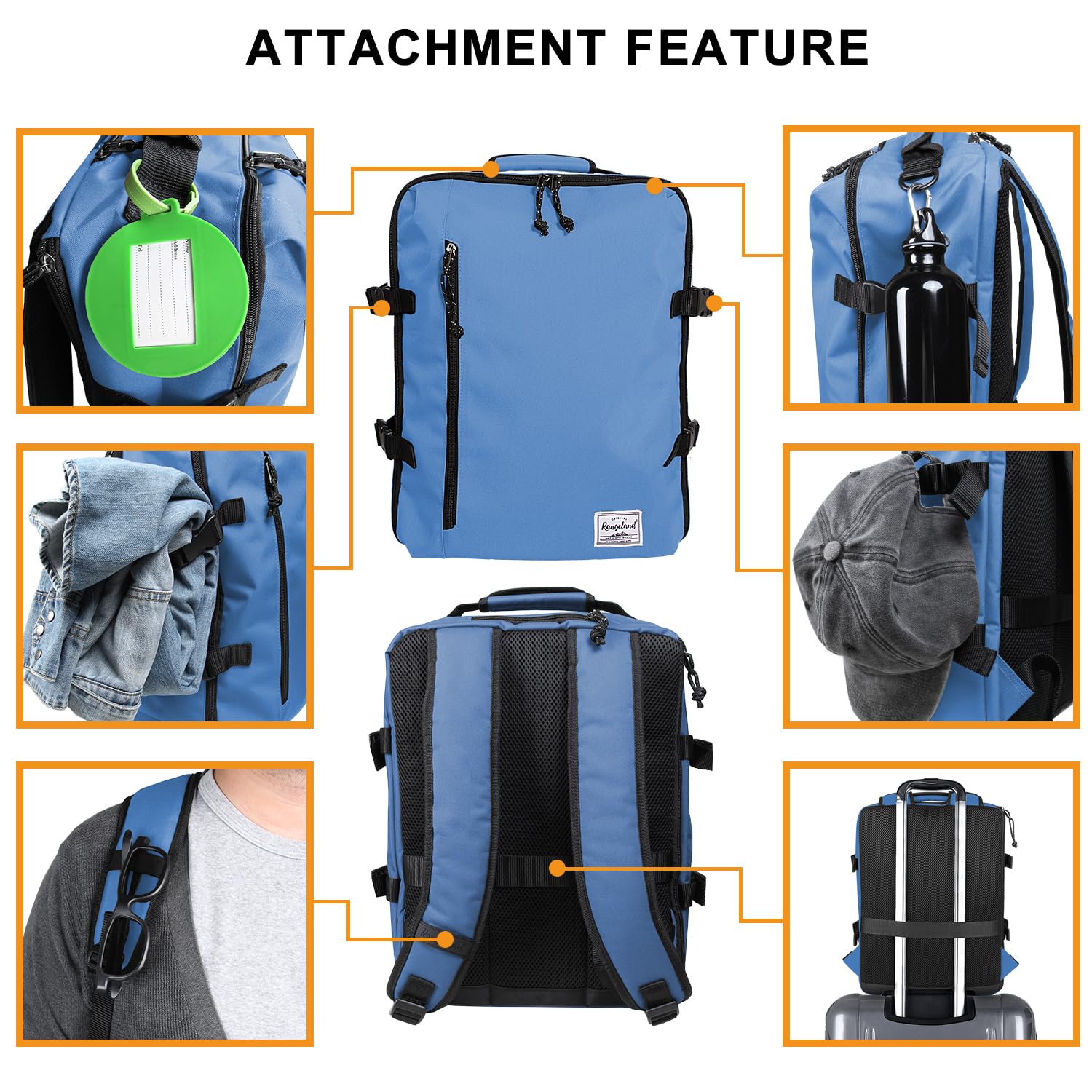 Our small cabin baggage backpack meets the 45 linear inches rule, even there are slight variation between airlines, this hand luggage backpack ensures fit in all airlines overhead bin without exceeding the carry-on baggage size allowance. The measurements include external pockets, top handle, or anything extending beyond the packing compartment can still fit in under-seat as a personal item backpack for most airlines like Allegiant, JetBlue, Ryanair, Spirit Airlines, Frontier Airlines and American Airlines.